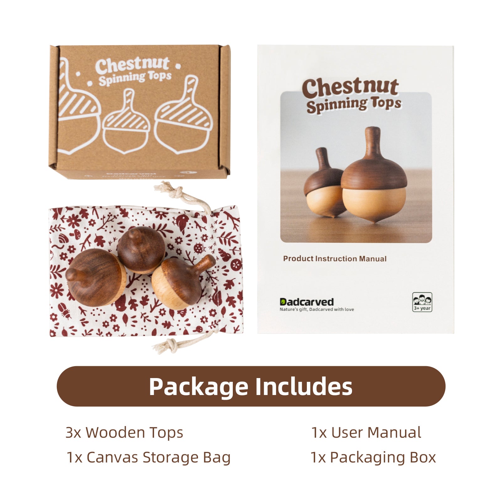 Nestled in earth-friendly packaging, this 3-piece spinning top set arrives gift-ready for birthdays, holidays, or preschool milestones. A thoughtful alternative to plastic toys, it delights both kids and parents: little ones adore its hypnotic spins, while adults appreciate its durable hardwood construction and non-toxic safety.